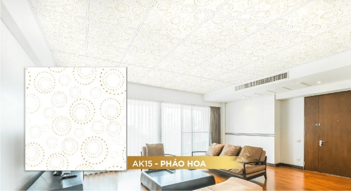 Phối cảnh trần la phông Vĩnh Tường Ánh Kim - Mẫu hoa cẩm chướng
